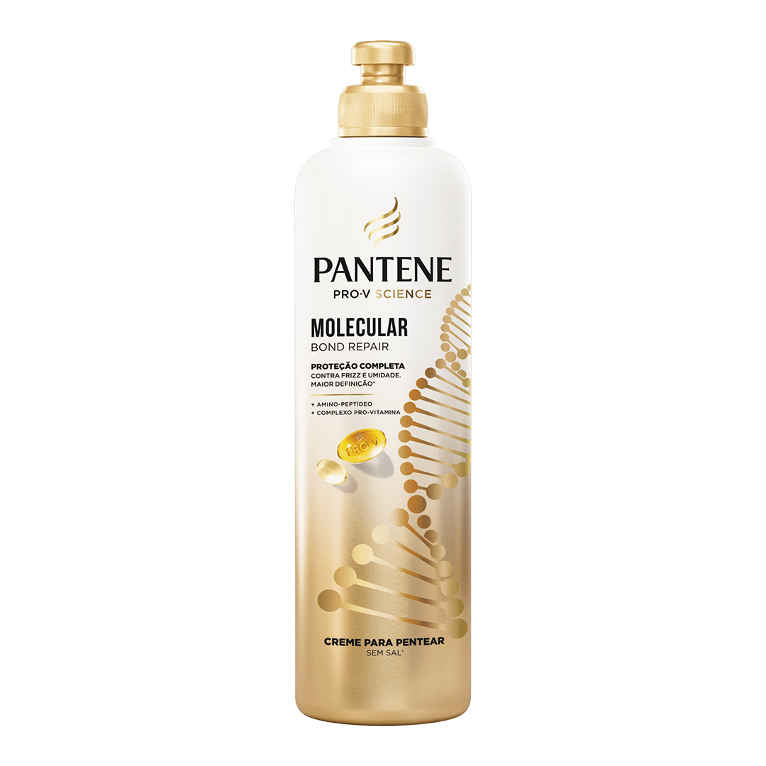 Quando o cabelo sofre dano profundo, as ligações capilares se rompem, alterando sua estrutura. Isso faz com que o cabelo fique quebrado, ressecado e com frizz. Descubra o Creme para pentear Molecular Bond Repair de Pantene que age na estrutura interna dos fios e protege contra o frizz e a umidade, proporcionando um cabelo controlado, macio e definido.