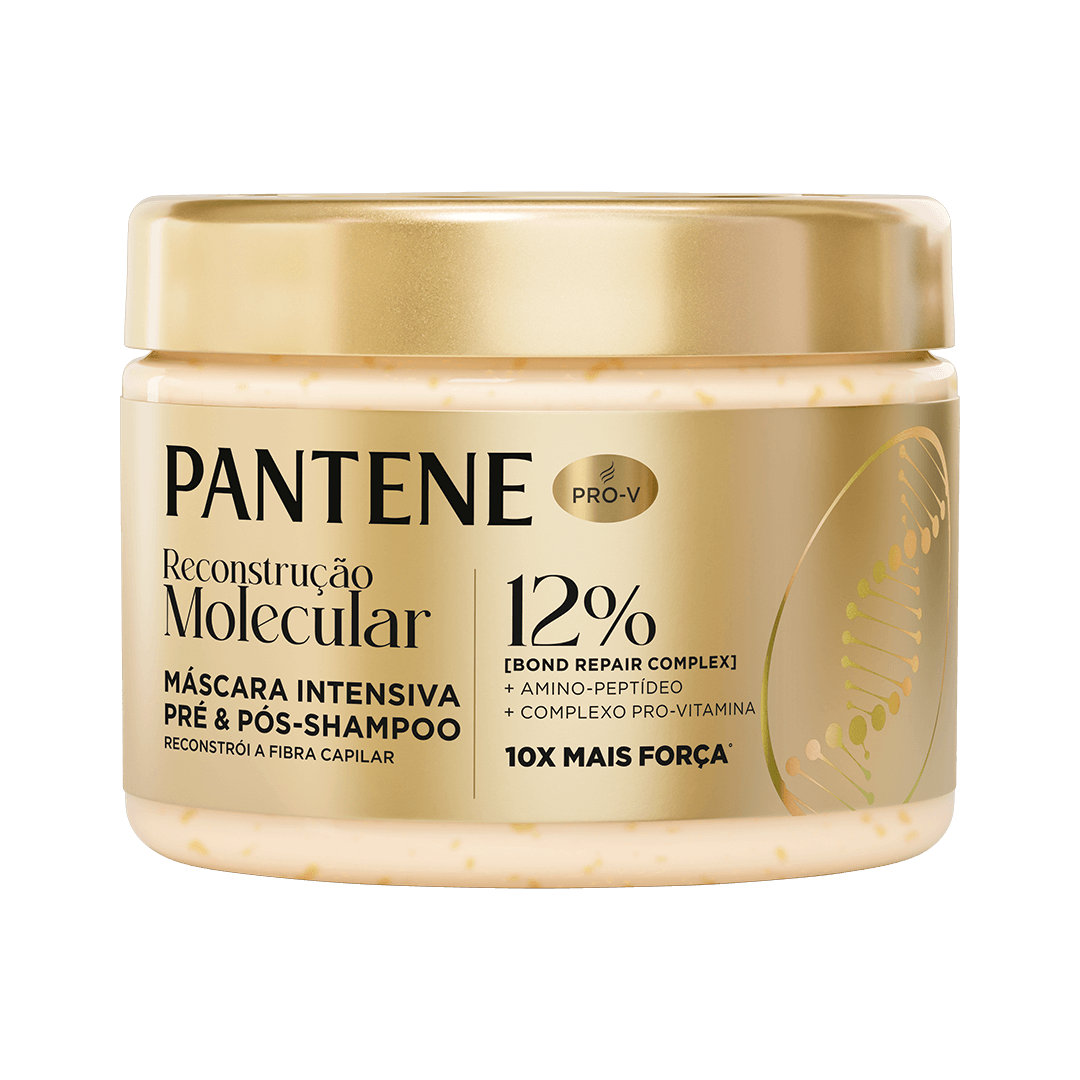 A Máscara Intensiva Reconstrução Molecular Pantene oferece até 10x mais força° e reconstrói a fibra capilar, sendo ideal para cabelos muito danificados e fracos. Você pode usá-la de várias maneiras: como Máscara de Tratamento, aplicando no cabelo úmido após o shampoo e deixando agir de 1 a 5 minutos antes de enxaguar; como Pré-Shampoo, aplicando antes de lavar os cabelos, do meio até as pontas, espalhando, massageando e deixando agir por pelo menos 1 minuto; ou como Condicionador, aplicando no cabelo úmido, deixando agir e enxaguando em seguida.
